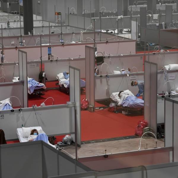 Imagen de un hospital temporal en un centro de convenciones de Madrid, España. Foto: AFP