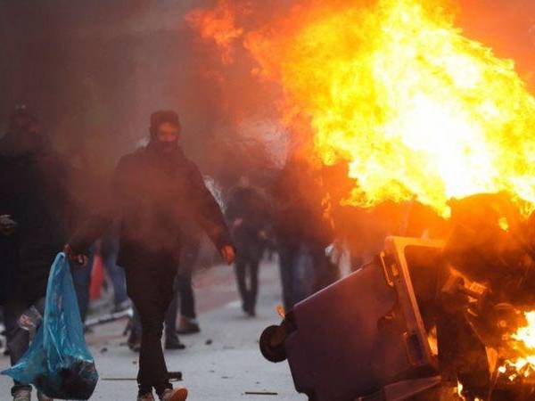 La policía antidisturbios holandesa fue atacada con piedras y material pirotécnico en La Haya