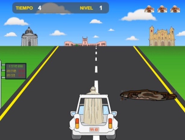 El papa Francisco intenta esquivar con el papamóvil los baches en las calles de Asunción en un videojuego lanzado hoy para criticar el estado de las vías públicas de la capital paraguaya, a la que el pontífice llegará este viernes.