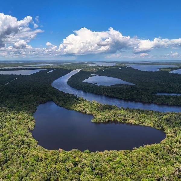 Fotografía aérea donde se observa una zona del Parque Nacional Anavilhanas, en el estado de Amazonas (Brasil).( )