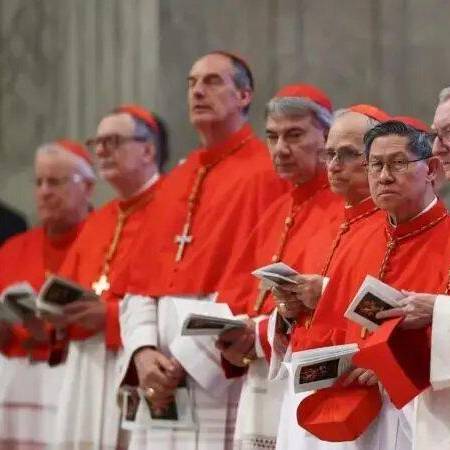 Entre los considerados 'papables' están el cardenal Pietro Parolin (segundo en la primera fila, desde la derecha) y el cardenal Luis Antonio Tagle (junto a Parolin).( )