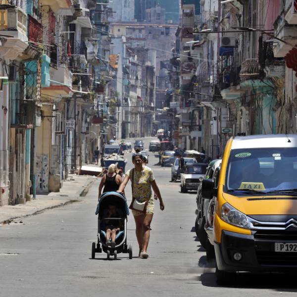 Una mujer camina con un coche para niño por una calle de la Habana (Cuba). EFE/ Ernesto Mastrascusa( )