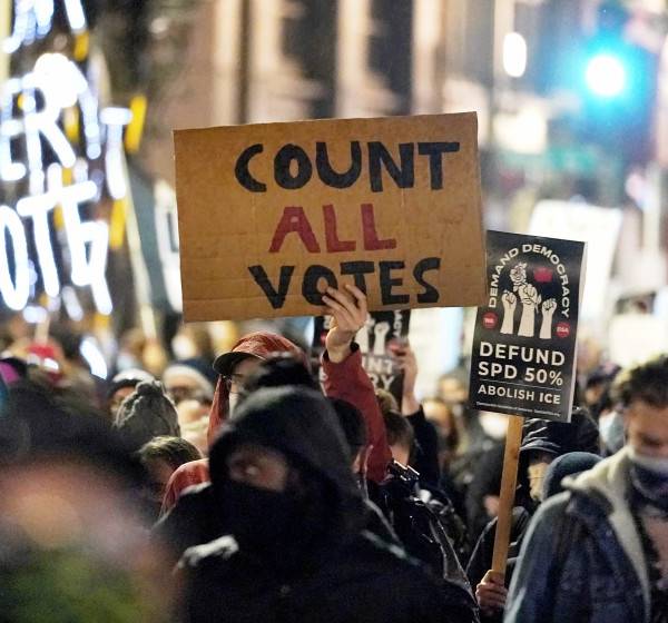 La policía arrestó a decenas de personas en Seattle, Minneapolis y Portland, Oregon, en la madrugada del jueves en protestas que demandaban el conteo de todos los votos en las elecciones en Estados Unidos. Grupos más pequeños que respaldan al presidente Donald Trump regresaron a sitios de tabulación en contiendas apretadas para demandar que el conteo fuese suspendido.