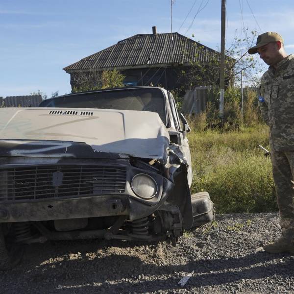 Un oficial ucraniano observa un vehículo capturado a las tropas rusas esta semana en la zona de Járkov. ( )