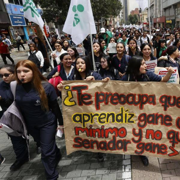 Las manifestaciones en Bogotá partieron de al menos cuatro puntos de la ciudad para confluir más tarde en la céntrica Plaza de Bolívar donde esta tarde se espera que Petro pronuncie un discurso mientras en el Capitolio Nacional, situado en el mismo marco, la Comisión Séptima del Senado discute una proposición para archivar la reforma laboral.