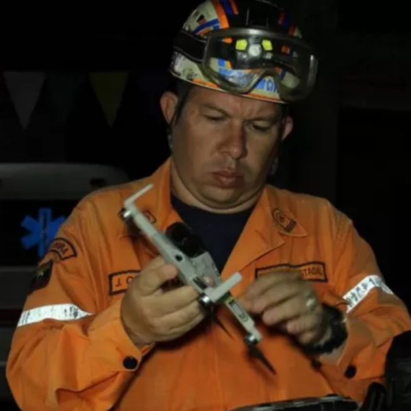 Un miembro de Protección Civil marca un punto en un mapa donde pretenden iniciar un operativo de búsqueda de miembros de un grupo religioso que continúan desaparecidos en el estado Táchira.