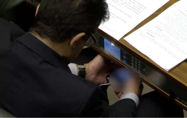 Un diputado brasileño fue grabado por un canal de televisión viendo un video pornográfico en su teléfono móvil durante una sesión de la Cámara.
