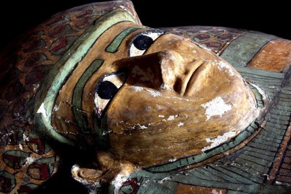 Al lado de ese sarcófago se hallaron objetos de cerámica y estatuillas de madera, envueltos en vendas de lino.