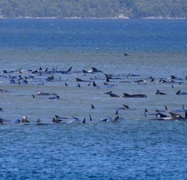 Unas 275 ballenas piloto permanecen varadas en una zona remota de la isla de Tasmania.