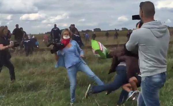 La crisis de los refugiados sirios capta las miradas del mundo, principalmente a raíz de la muerte del pequeño Aylan Kurdi. Pero este 8 de septiembre, un hecho de lo más insólito se reportó en las redes sociales. Un video captó el momento en el que un grupo de refugiados sirios intentaba romper un cordón de seguridad en la ciudad de Röszke, en Hungría, cerca de la frontera con Serbia. De repente, una reportera pone la zancadilla a uno de los refugiados, que corre con un niño en brazos.