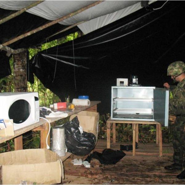 Según el Ejército, en el sitio se producian hasta 300 kilos de cocaína al mes. Foto: Ejército de Colombia