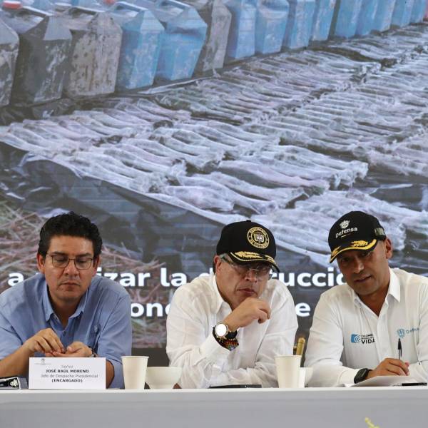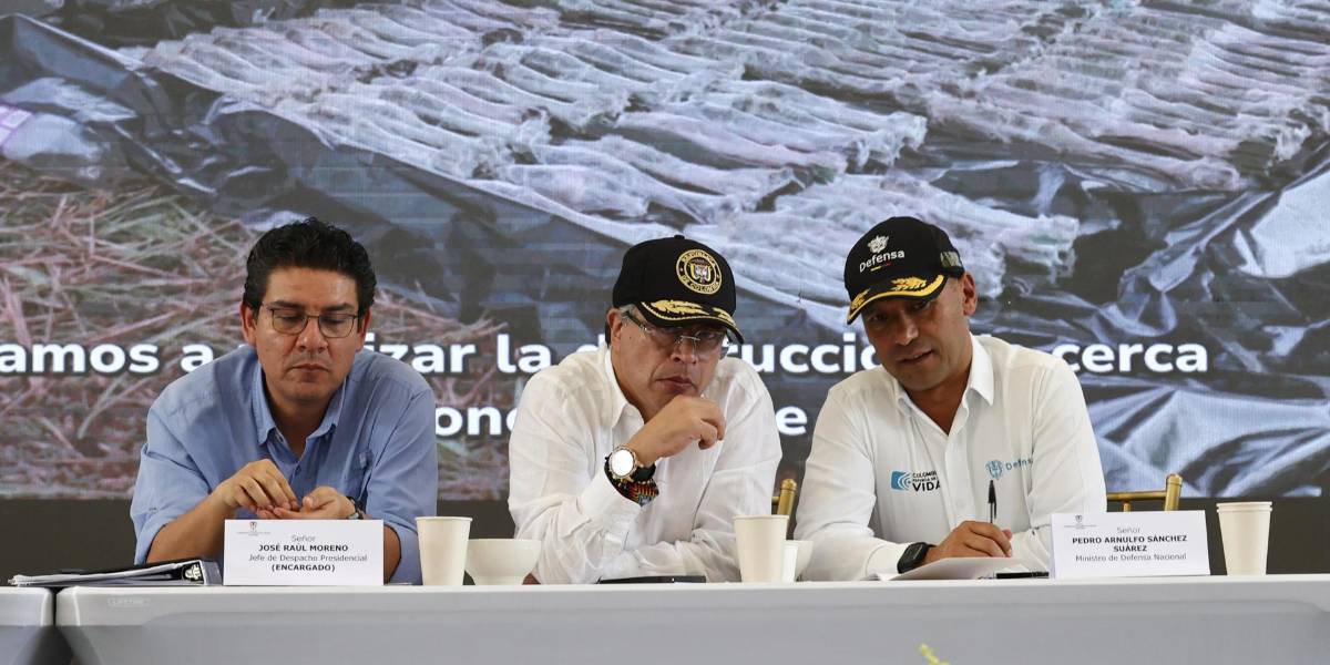 Con este acto comenzó la destrucción progresiva de 14 toneladas de material de guerra que la CNEB, surgida de la escisión de otra disidencia conocida como Segunda Marquetalia, entregó al Gobierno como gesto de paz en los departamentos de Putumayo y Nariño.