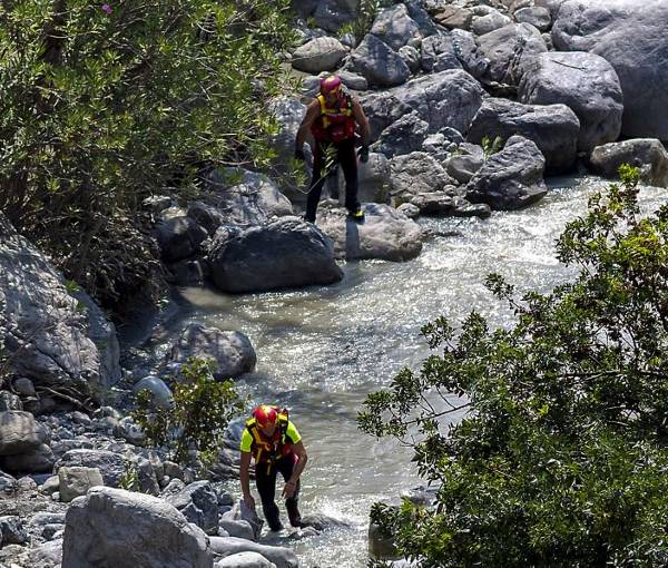 Tres personas que resultaban desaparecidas fueron halladas vivas y sanas, a varios kilómetros de distancia de las gargantas del torrente, donde acampaban.