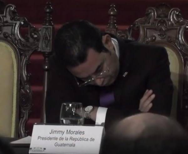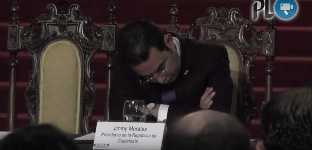 Profundamente dormido, en algunas ocasiones y, en otras, cabeceaba. Así captó captaron al presidente de Guatemala, Jimmy Morales, durante una sesión de trabajo.