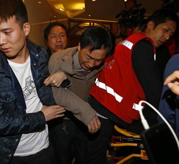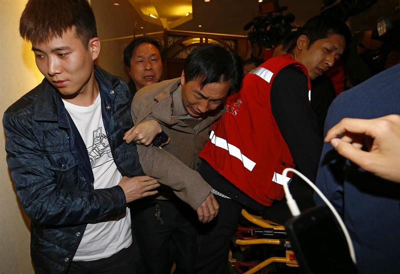 Tras oír la noticia, se vivieron escenas de histeria, de nervios y desesperación en el hotel pequinés, donde se registraron varios desmayos de familiares, que tuvieron que ser sacados de la sala en camillas por el equipo de sanitarios desplazados hasta el lugar.