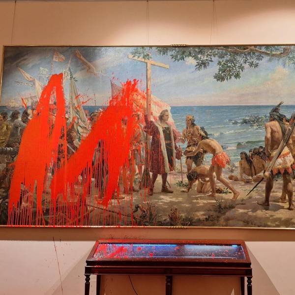 Con esta acción, la organización pretendía poner sobre la mesa que para muchos pueblos originarios esta fecha, 12 de octubre, simboliza “el despojo y el sufrimiento colectivo”.