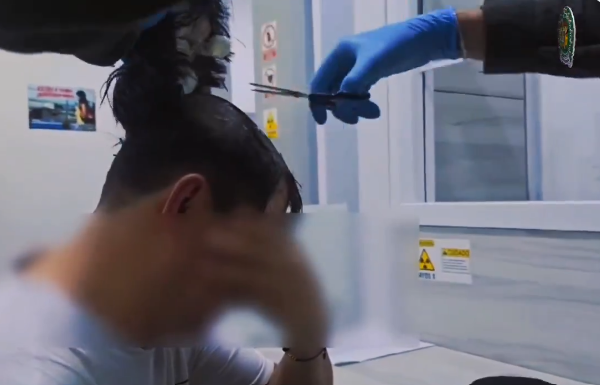 Los uniformados usaron una tijera para separar el peluquín de la cabeza del sujeto.( )