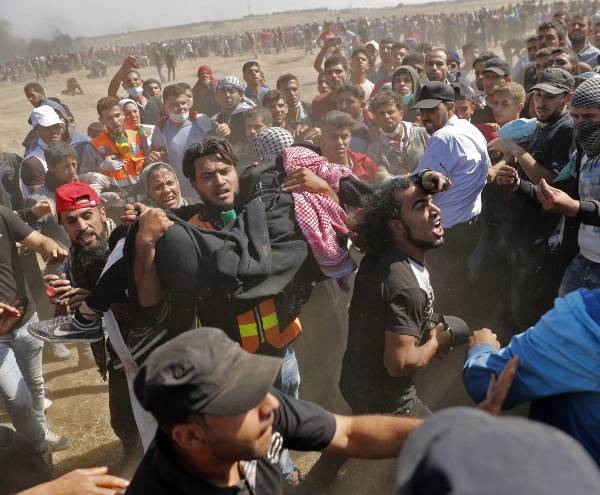 Miles de personas se manifestaron desde la mañana en la frontera entre la Franja de Gaza e Israel. Los soldados israelíes abrieron fuego cuando los manifestantes se acercaron a la valla, donde el ejército casi duplicó sus efectivos.
