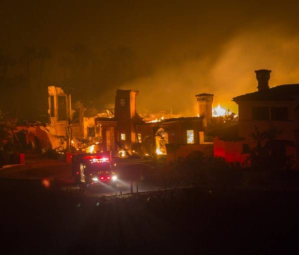 El incendio "Woosley" se ha propagado con velocidad amenazando a lo largo de la costa, provocando órdenes de evacuación, incluyendo la totalidad de la exclusiva Malibú, donde viven muchas celebridades de Hollywood.