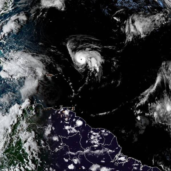 Fotografía satelital cedida por la Oficina Nacional de Administración Oceánica y Atmosférica de Estados Unidos (NOAA), a través del Centro Nacional de Huracanes (NHC), donde se observa la localización del huracán Humberto y la tormenta número nueve en el Atlántico. ( )