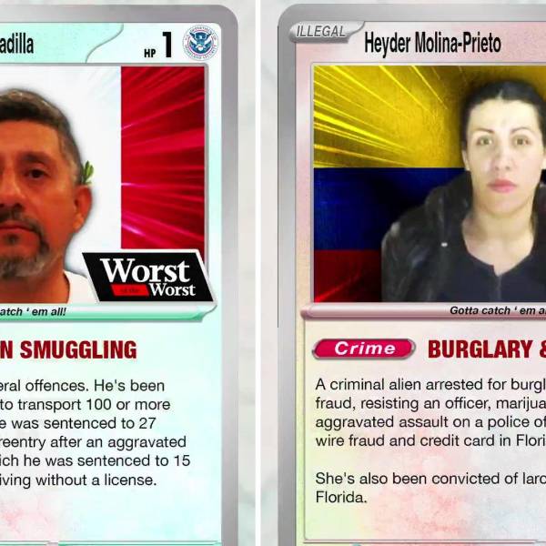 Además, el DHS recrea a varios de los detenidos como cartas de Pokémon, un producto coleccionable que es muy popular entre los seguidores de la franquicia. Sin embargo, en lugar de los monstruos y habilidades fantásticas del juego, estas cartas muestran a personas detenidas e indican delitos como fraude, homicidio, tráfico humano y pedofilia. Entre los representados aparecen ciudadanos de México, El Salvador, Cuba, Irán, China y Guatemala, lo que evidencia el alcance internacional de las operaciones migratorias.