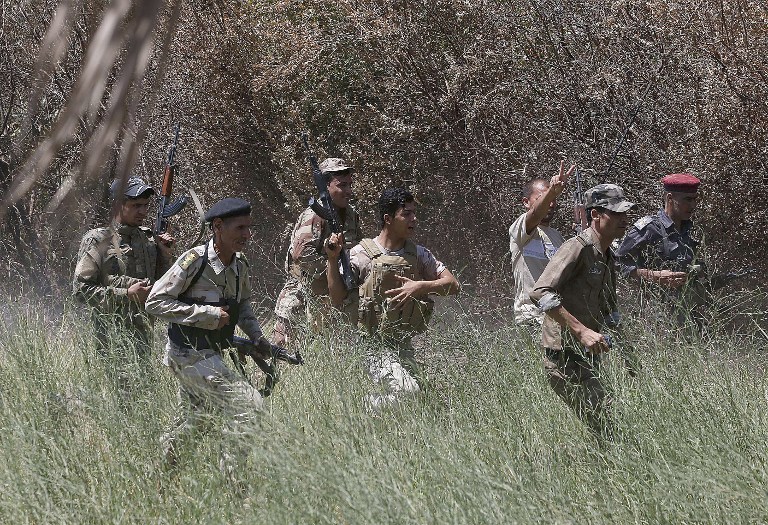 IRAK.- Soldados iraquíes de la unidad Abbas en un campo en Jurf al Sakhr, a 60 kilómetros al suroeste de Bagdad. Foto: AFP