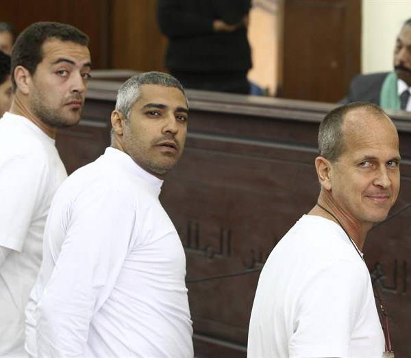El australiano Peter Greste y el egipcio con pasaporte canadiense Mohamed Fahmy fueron condenados a siete años de prisión por difundir "noticias falsas" sobre Egipto y colaborar con los islamistas Hermanos Musulmanes, considerados "terroristas" por las autoridades.
