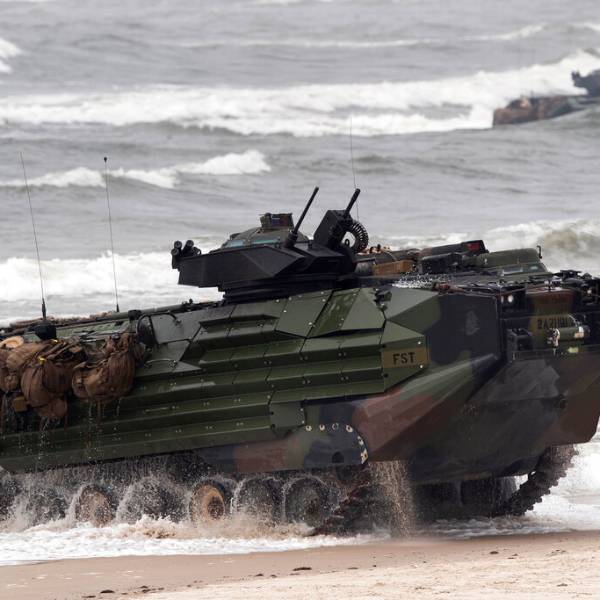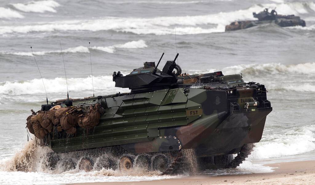 Un vehículo de asalto anfibio de la infantería de marina de Estados Unidos participa en maniobras de desembarco. Foto: AP
