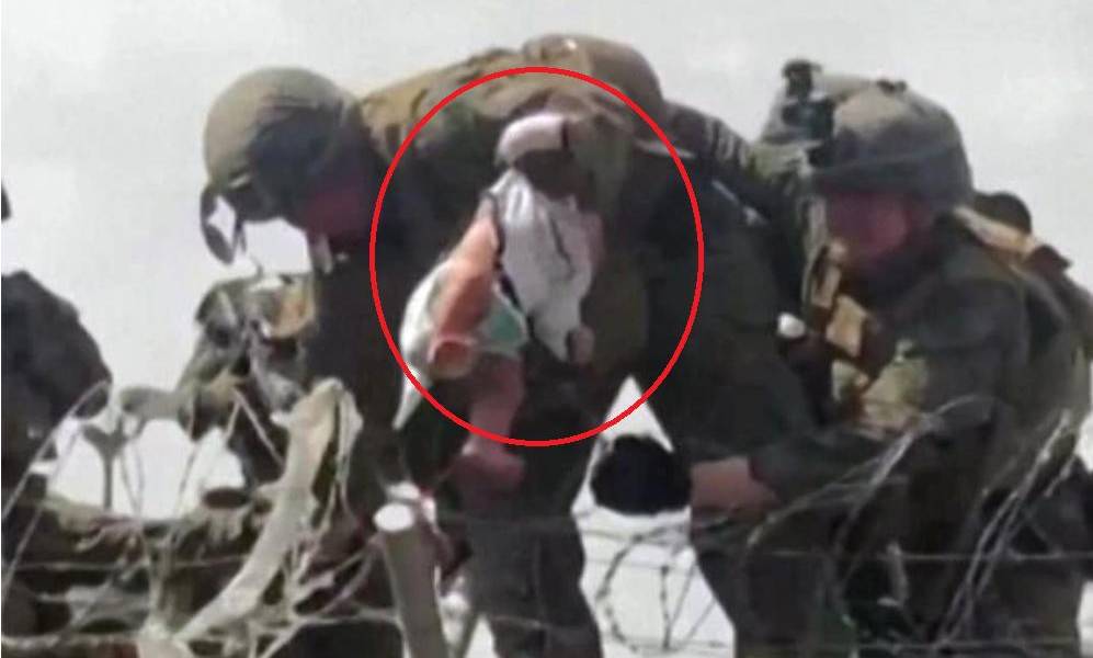Un desgarrador video publicado en las redes sociales muestra a un grupo de afganos entregando un bebé a tropas militares estadounidenses que se encontraban del otro lado de un muro en el aeropuerto de Kabul.
