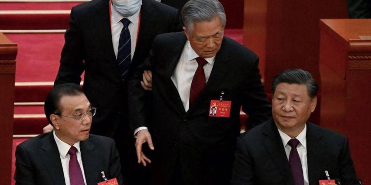 En plena ceremonia de clausura del Congreso del Partido Comunista chino, el expresidente Hu Jintao fue levantado de su asiento y llevado fuera del salón de actos.