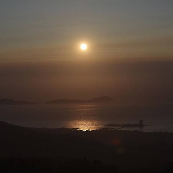 Vista del humo que desprenden los incendios de Canadá hoy domingo desde el monte Cepudo de Vigo, España. ( )