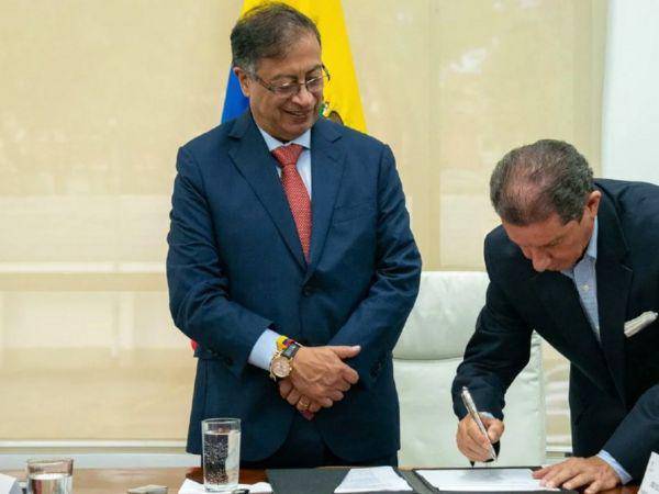 Gustavo Petro y José Félix Lafaurie en la firma de un histórico acuerdo de tierras.( )