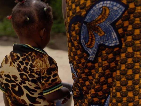 En la ciudad de Makeni, tres horas en auto al este de la capital de Sierra Leona, Freetown, una joven madre está sentada afuera de su casa con su hija de 3 años.