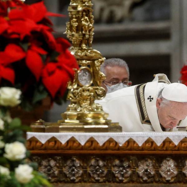 Francisco ofició la Misa del Gallo en una basílica que este año acogió a unos 1.500 fieles en uno de los ritos más importantes del calendario litúrgico, pues el año pasado lo celebró solo ante unas pocas personas a causa de la pandemia.