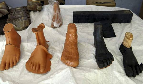 Tras muchas pruebas se decidieron por el caucho, un material barato, abundante, resistente al agua y que se ajustaba a la vida en la India rural. La prótesis tiene forma de pie y no de zapato, una ventaja para los agricultores que pasan largas horas bajo la lluvia o en plantaciones de arroz y con una flexibilidad que permite el uso de los retretes asiáticos, sin asiento, o la postura de cuclillas de descanso.