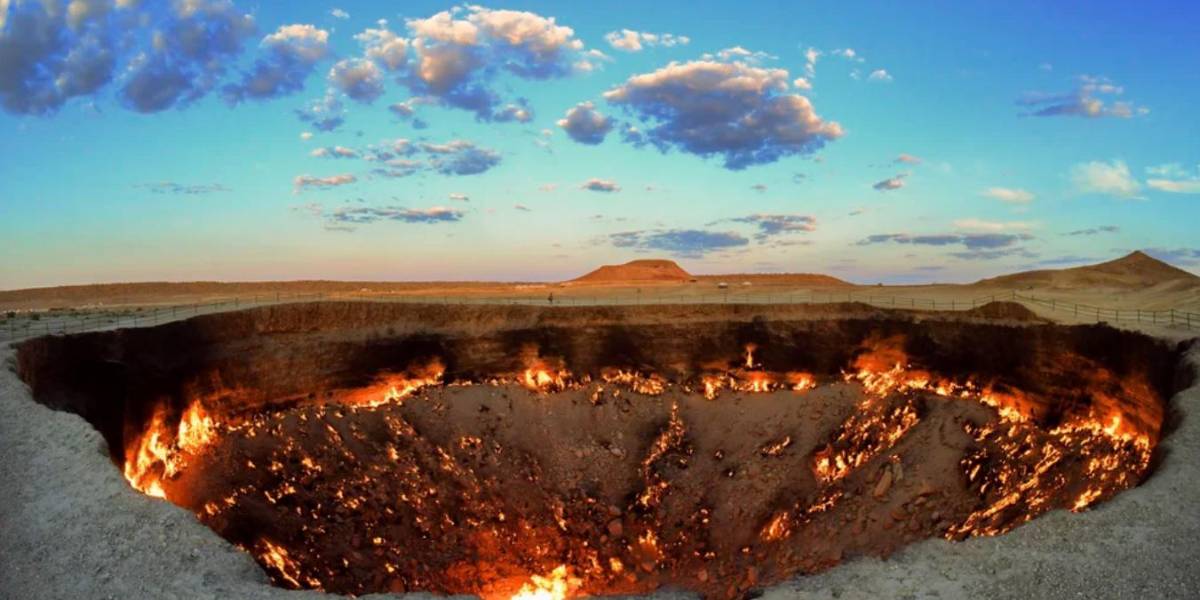El también denominado pozo de Darvaza es una gigante llama de gas natural que emerge de un cráter en el país de Asia central.