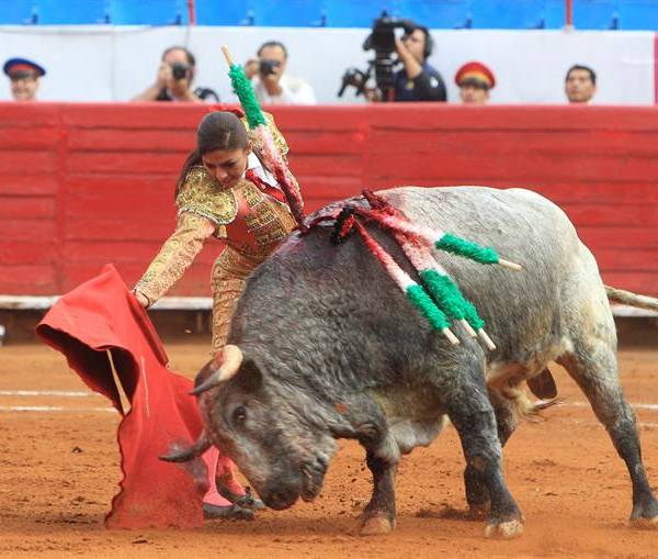 En la jornada, que reunía por primera vez a tres matadoras mexicanas en la plaza, la torera Karla De los Ángeles, quien recibía la alternativa, sufrió una cornada en el muslo izquierdo y otra en un glúteo después de intentar estoquear al toro.