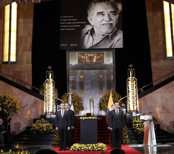 Hoy, los presidentes de México y de Colombia, Enrique Peña Nieto y Juan Manuel Santos, respectivamente, encabezaron el acto para rendir tributo a un hombre que, como dijo Santos, "incorporó en sus obras la esencia misma del ser latinoamericano".