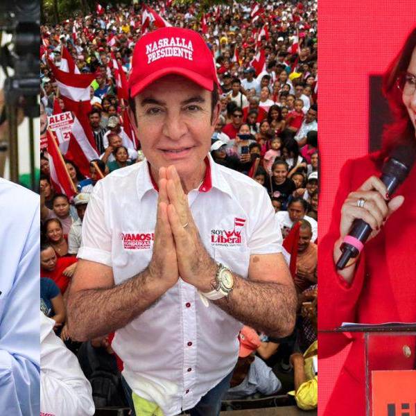 Composición de los candidatos a la presidencia de Honduras: Nasry Asfura, Salvador Nasralla y Rixi Moncada.