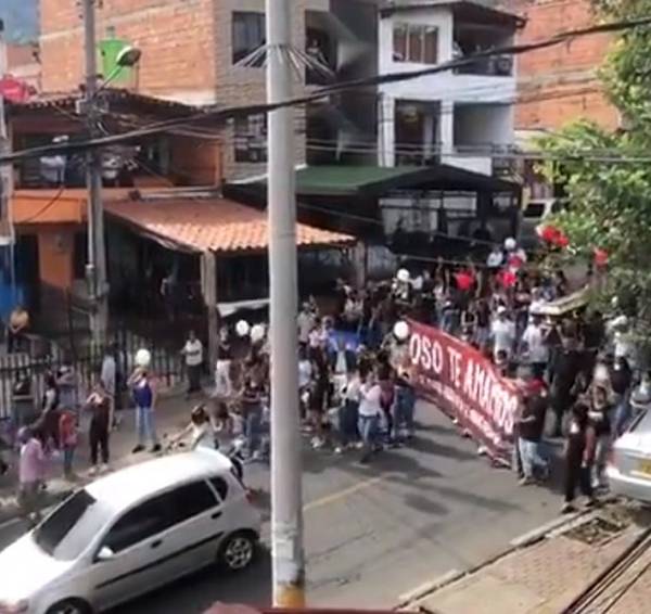 Los enormes letreros y los globos blancos que presidían el cortejo reflejan toda la logística detrás. “No se muere quien se va. Se muere quien se olvida", se leía en uno de ellos, mientras otro aún más directo decía: “Oso te amamos”. Atrás, el cuerpo del hombre que la Policía había capturado en diciembre pasado cuando hacía una fiesta en plena calle. También en esa oportunidad la comunidad se organizó para evitar que fuera detenido y los vecinos lanzaron piedras, agua caliente o aceite a los uniformados que intentaron llevárselo. Finalmente, como informó la Policía de Medellín en ese momento: “en un intento de asonada terminó un operativo en contra de quien sería el cabecilla de la estructura criminal Niquía Camacol, en Bello. Se trataría de alias El Oso, uno de los más buscados por la Policía de Medellín”.