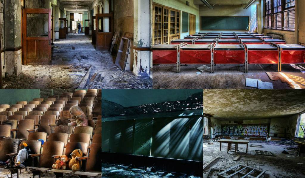 Con el tiempo, las edificaciones que dejan de utilizarse y quedan abandonadas van perdiendo su encanto hasta convertirse en esperpentos. Los que un día fueron centros de recreación, inundados de las risas de niños y adolescentes; ya sea por el tiempo, desastres naturales o la guerra, hoy son 'escuelas de terror'.