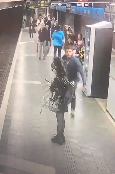 Captura dde la grabación de la cámara de seguridad en la que un hombre agrede a una mujer en el Metro de Barcelona, España. ( )