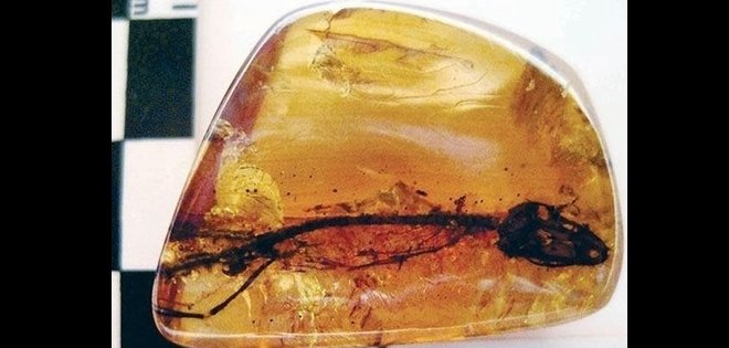 INTERNACIONAL.- Un ejemplar de lagartijas fósiles resguardadas en ámbar fue hallado en México, en 2013. Foto: La Prensa de México