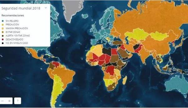 El mapa de la peligrosidad en el mundo, realizado a partir de las recomendaciones de viaje del Ministerio de Asuntos Exteriores de España, coloca a Ecuador en un nivel intermedio, que no ha variado con respecto al del año 2017.