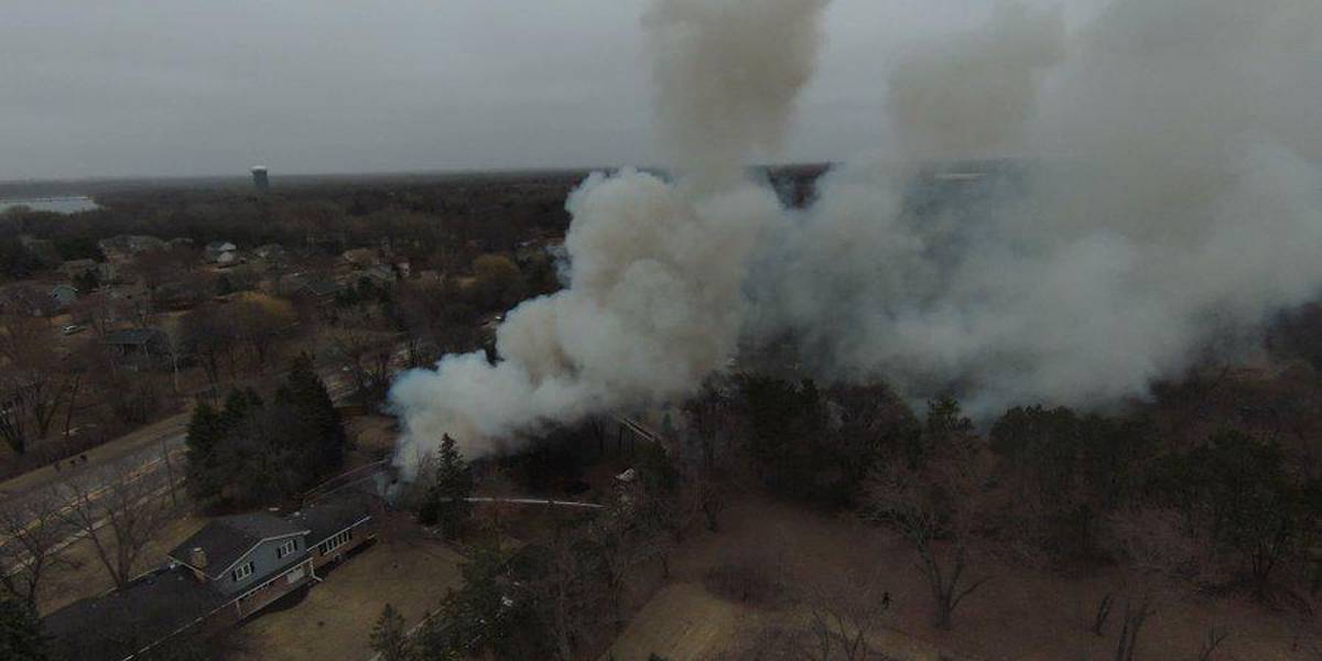Humo saliendo del accidente de la avioneta en Minnesota. ( )
