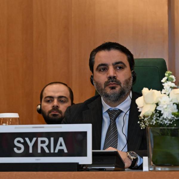 El Ministro Interino de Relaciones Exteriores de Siria, Asaad al-Shibani, asiste a una Sesión Extraordinaria del Consejo de Ministros de Relaciones Exteriores de los Estados Miembros de la Organización de Cooperación Islámica (OCI) en Yeda, el 7 de marzo de 2025.( )