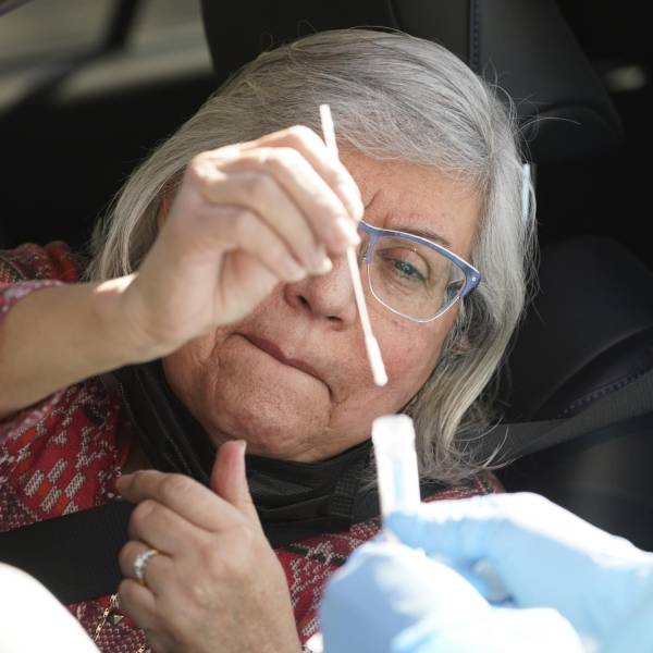 Diana Merchant se aplica una prueba de COVID-19 en Whittier, California, 25 de enero de 2022.( )