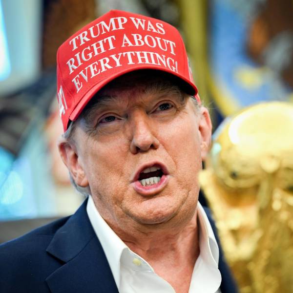 El presidente de EEUU Donald Trump junto a la Copa FIFA World Cup trophy en foto de archivo( )