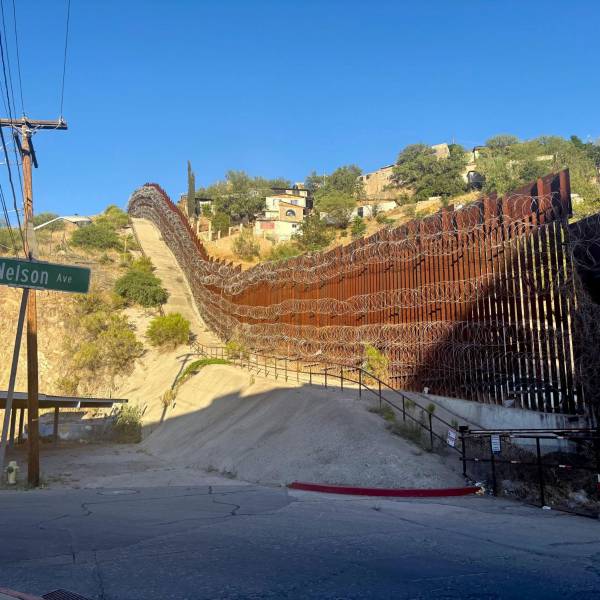 El muro fronterizo que separa Sonora el 6 de Junio de 2024, México (d) de Arizona (EE.UU.). ( )