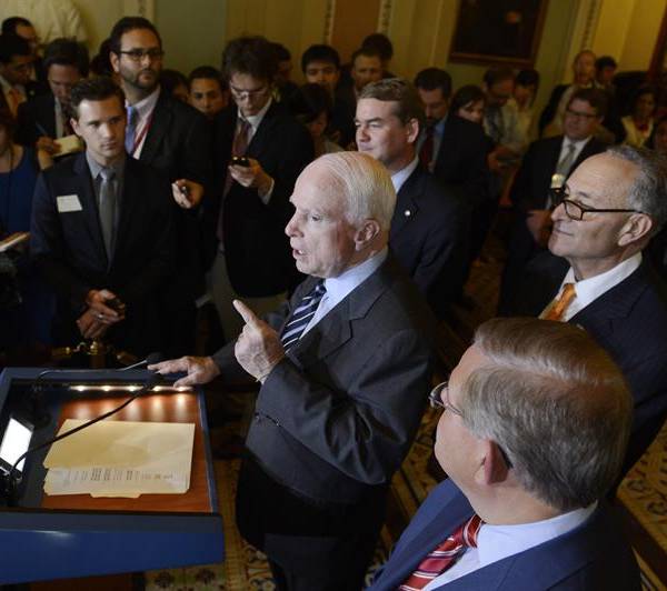 El proyecto que ha sido discutido en las últimas semanas en la Cámara Alta del Congreso de EE.UU. fue elaborado por el llamado Grupo de los Ocho, formado por cuatro senadores republicanos y cuatro demócratas.